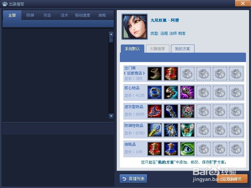 出装推荐功能,可以修改游戏中每个英雄默认推荐的装备,方便修改每个人个性化的推荐装备。