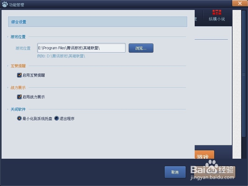 功能大全功能是一些插件的基本配置功能,包括游戏路径设置,互赞提醒,战斗力战士功能